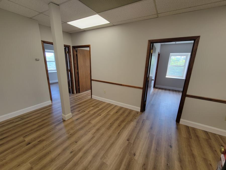 Single Offices and Office Suites Available for Lease at 14-16 Fletcher Street in Chelmsford, MA. Office space is located on the 2nd Floor (walkup) above the first-floor retail which includes Euphoria Coffee, Sun Nails & Spa, Vina Salon, Zesty's Pizza and Little Z's Ice Cream. Property is located off of North Road and Chelmsford Street (Rte. 110) with easy highway access to I-495 & Rte. 3 and great local amenities in Chelmsford Center such as restaurants, banks, gyms, hotels and more. Bruce Freeman Walking Trail is located right next to the subject property. Just pay for your own phone/internet, all other utility cost and property expenses are INCLUDED in the rent. Available offices included office 3A (520+/- SF), office 3B.1 (220+/- SF) and office 3B.2 (420+/- SF) totaling 640+/- SF that can be rented together or separately. Office 8 totals 1,800+/- SF with multiple offices and its own private restroom. Call now for additional information 978-251-1111.